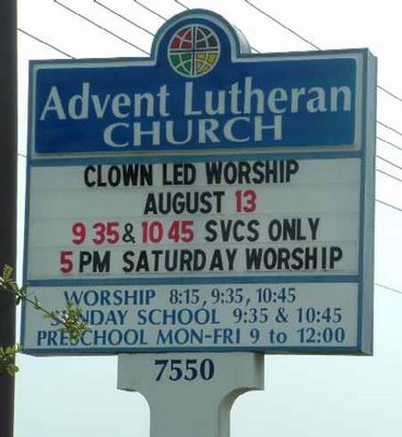 The Clowns are being featured at the 9:25 and 10:45 SerViCeS only so really the sign is saying “Don’t bother showing up on Saturday.”
